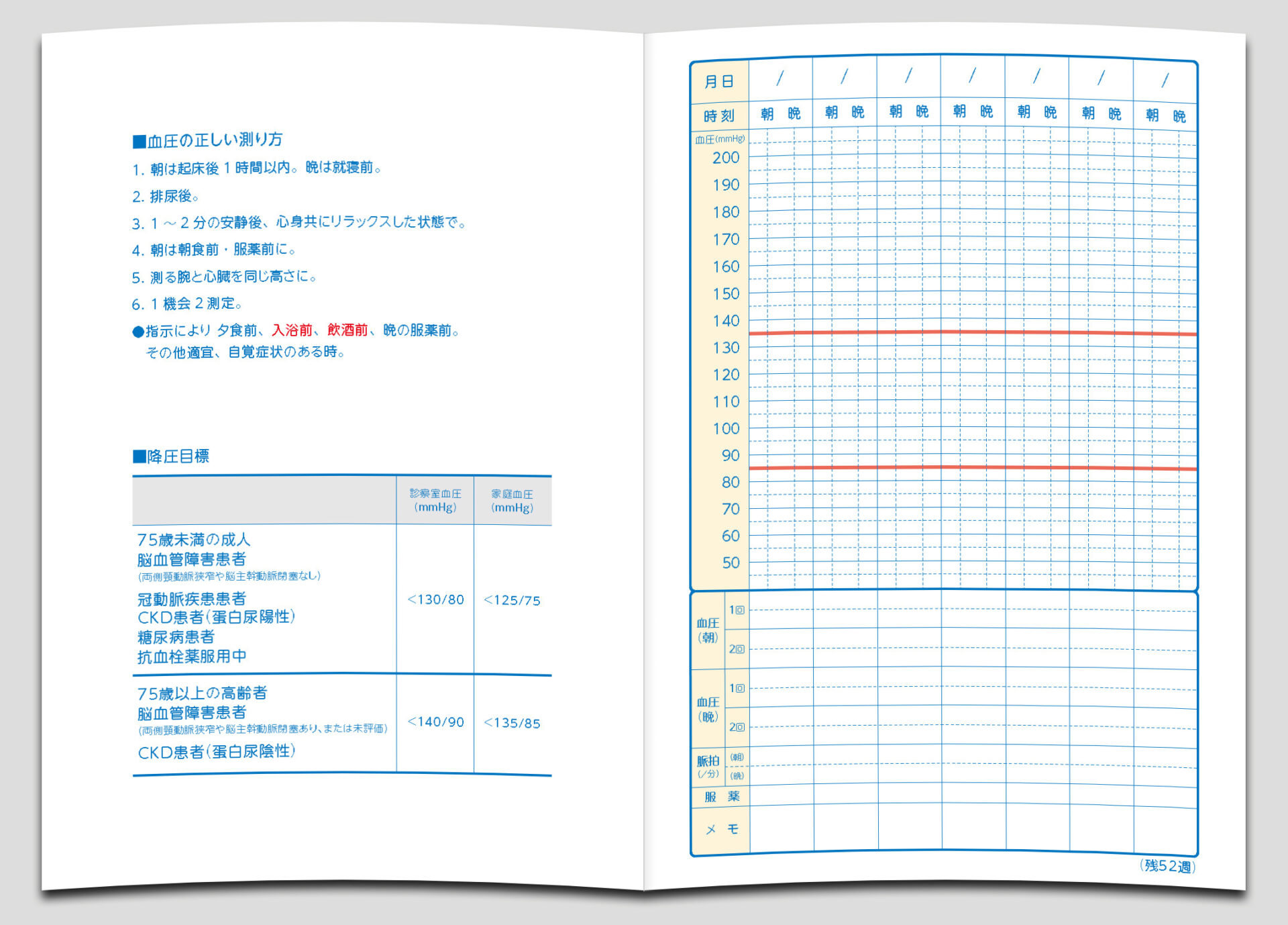 ○毎日の血圧記録で、高血圧や合併症の早期発見に役立ちます